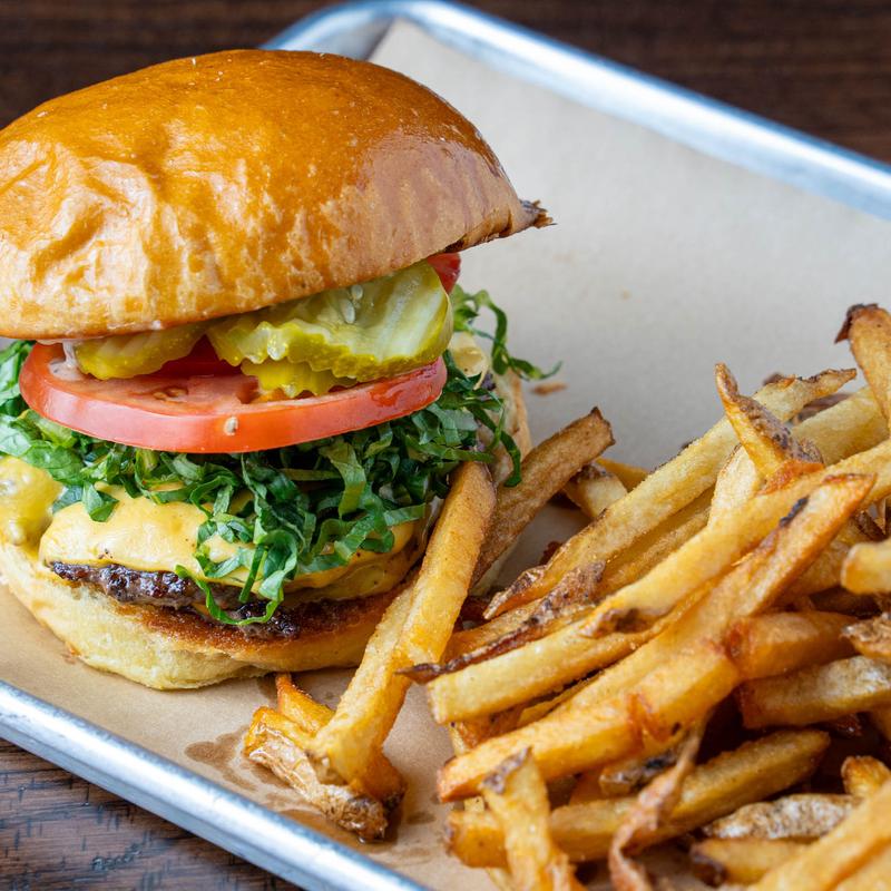 Classic 8oz burger topped with American cheese, lettuce, tomato, onion, pickle, ketchup & mayo.
